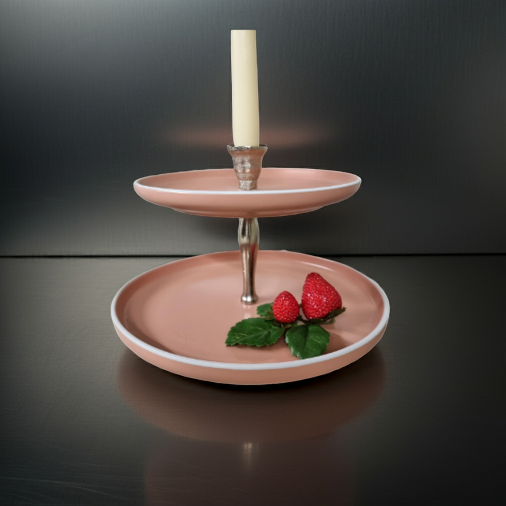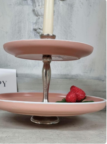 Absolutes Einzelstück, eleganter Kerzenhalter als Etagere, handgefertigt in altrosé.