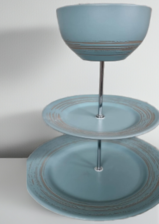 Diese 3-stöckigen Etagere, im charmanten Landhaus-Stil ist handgefertigt, besteht aus Keramik