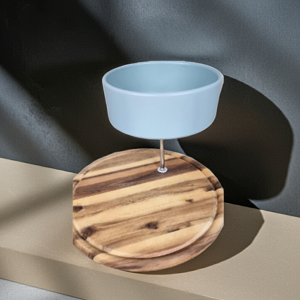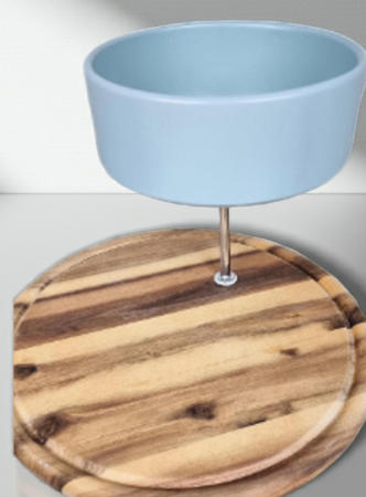 2-stöckige Etagere mit Keramikschale und massivem Holzteller, Kombination aus Eleganz und Natürlichkeit