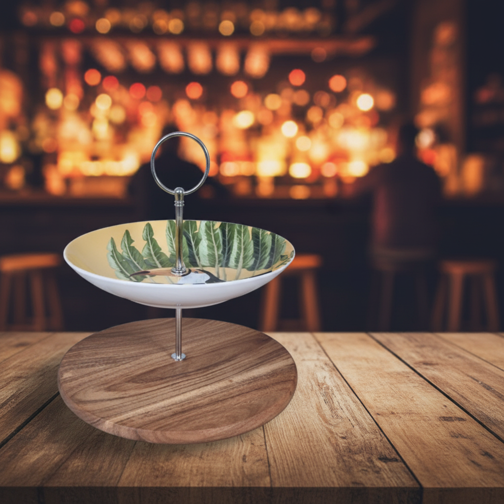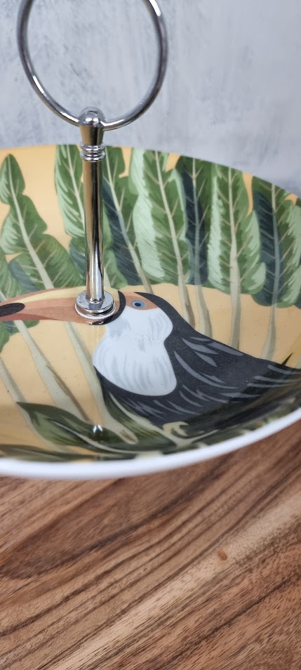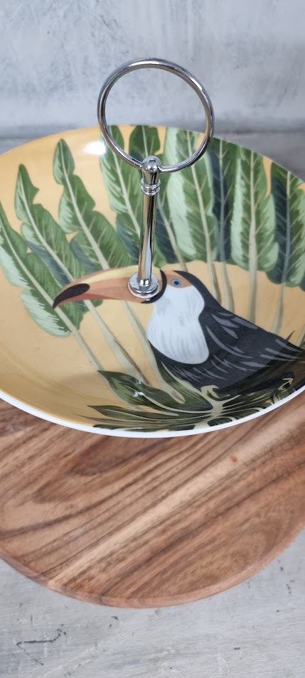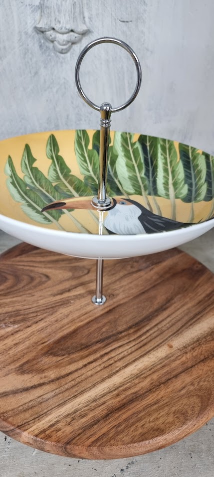 Ein Statement-Pices mit WOW-Faktor, handgemachte Etagere, Akazienholz trifft Tukan